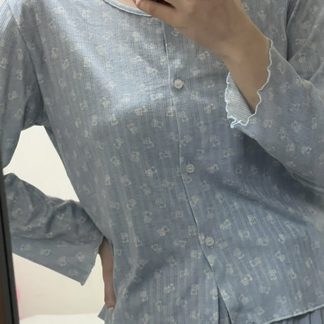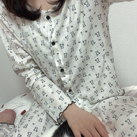 厚手の素材で1枚でかなり暖かく、ほっこり柔らかい着心地なので、寒くて眠れないという悩みにはピッタリでした!パイピングもカワイイ♡